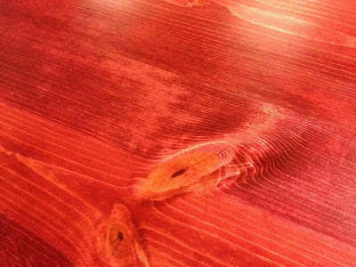 Now that the Hall Tree is done I could start working on the kid’s table again.  I stained it on Saturday to match the Hall Tree since they will be in the same area.  The stain came out a little blotchy in some areas.  The directions on the stain say that it does not need any conditioner applied first and I had great results with all my tests on the Hall Tree.  I bought the wood for the hall tree at Home Depot and the wood for the table was purchased at Lowes.  I also sanded the table a couple of weeks ago.  I’m thinking that I should have re-sanded it the same day to open the pores a little more.  I also should have found some scraps from the Lowes wood to test the stain on.  I put one coat of poly on the bottom on the tabletop, let it dry for an hour, and then flipped it over and put a coat on the top.  I am going to give it a light sanding tonight and then apply another coat on both sides.  My goal is to have 2 coats on the bottom of the tabletop and the legs and frame and then 5 coats on the tabletop itself.