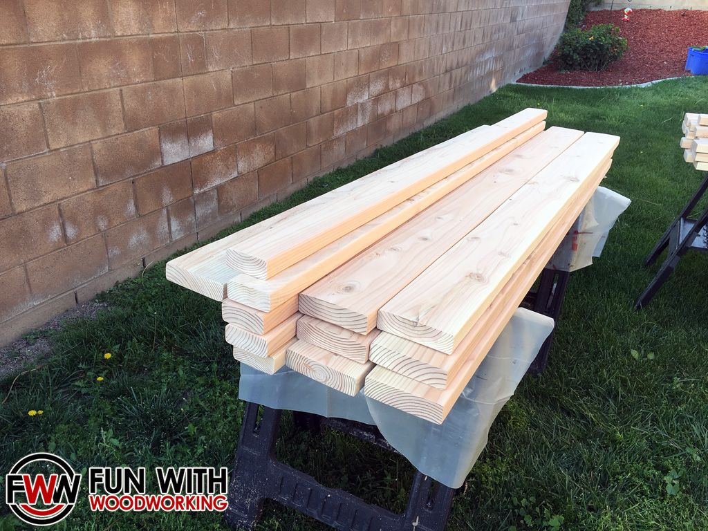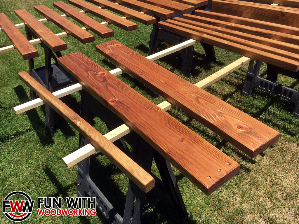 I started this project early last year and I never seem to have the time needed to complete the various stages. I finally got some time in April to get all the pieces outside and get them sanded down to 120 grit with my random orbit sander. It took about 4 hours total to get them all smooth enough for stain and then polyurethane.