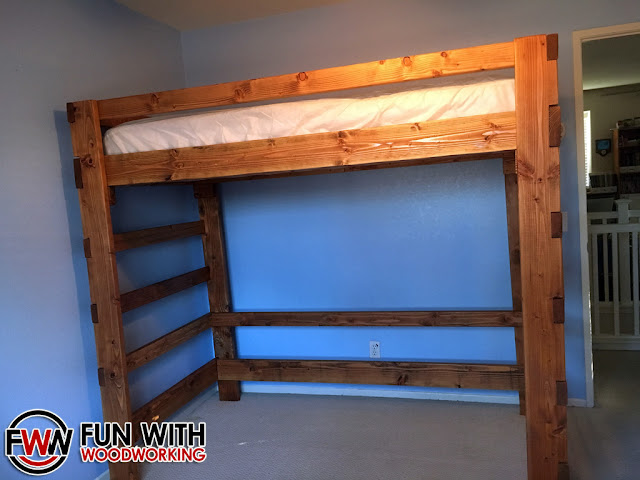 The over all assembly time for the first part of the bed took about 5 hours but that included showing my boys how it went together and answering all of their questions as to why we were doing the way that we did. If everything goes according to plan I will be adding the second half the bed this weekend. I also plan on lowering the top bunk about 3″ before I add that second bed. The mattress was a little thicker than I expected so the top rail isn’t as effective as I like. I will adjust the height of the second bed to match the first as I assemble it.