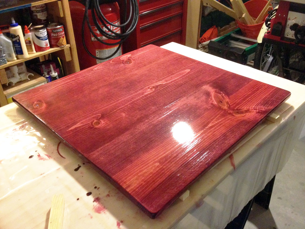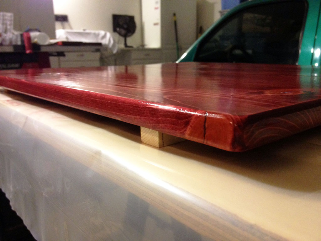 I figure I will put the 2nd coat on the bottom of the tabletop tonight, let it sit for an hour, and then lightly sand the top and add one more coat to make 4. I will then let it sit overnight and lightly sand and apply another coat tomorrow morning. Wow, this is really starting to feel like work!