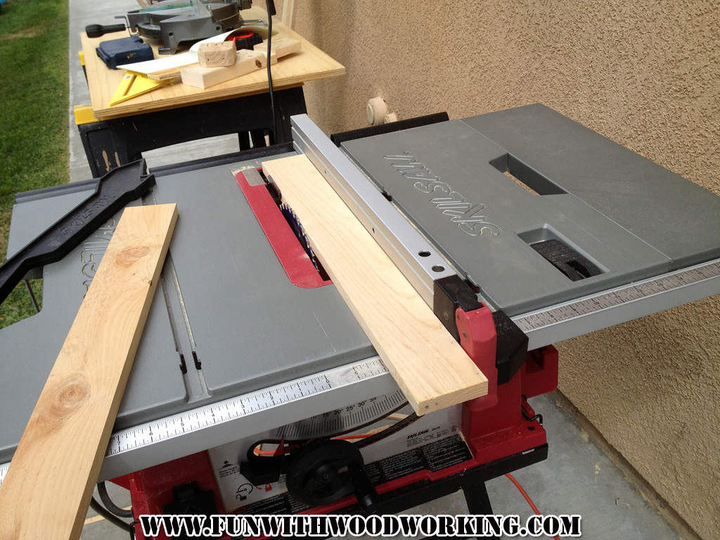 I then set my tablesaw to 3″ to cut the leg pieces.