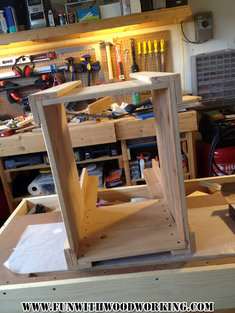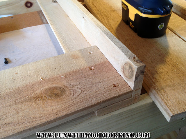 I glued and screwed two 20″ boards to the bottom. These were from the 8 that I cut at the beginning.
