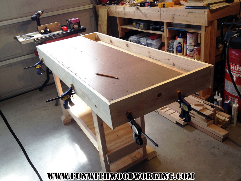 I got the benchtop all cut down to size and screwed together. I also cut the dado’s and grooves for the rear tray. All I have left now is to cut the pieces out of the top for the dogs and tailstock. My bench vise screw should be in any time now. When it comes in I will build and install the tailstock.