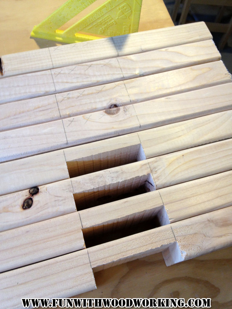 I also cut the groove in the rear 2×4 for the tool tray. It doesn’t say anywhere in the book but I think that I am going to have to notch the plywood 1/4″ to account for the ends of the 2×4’s.