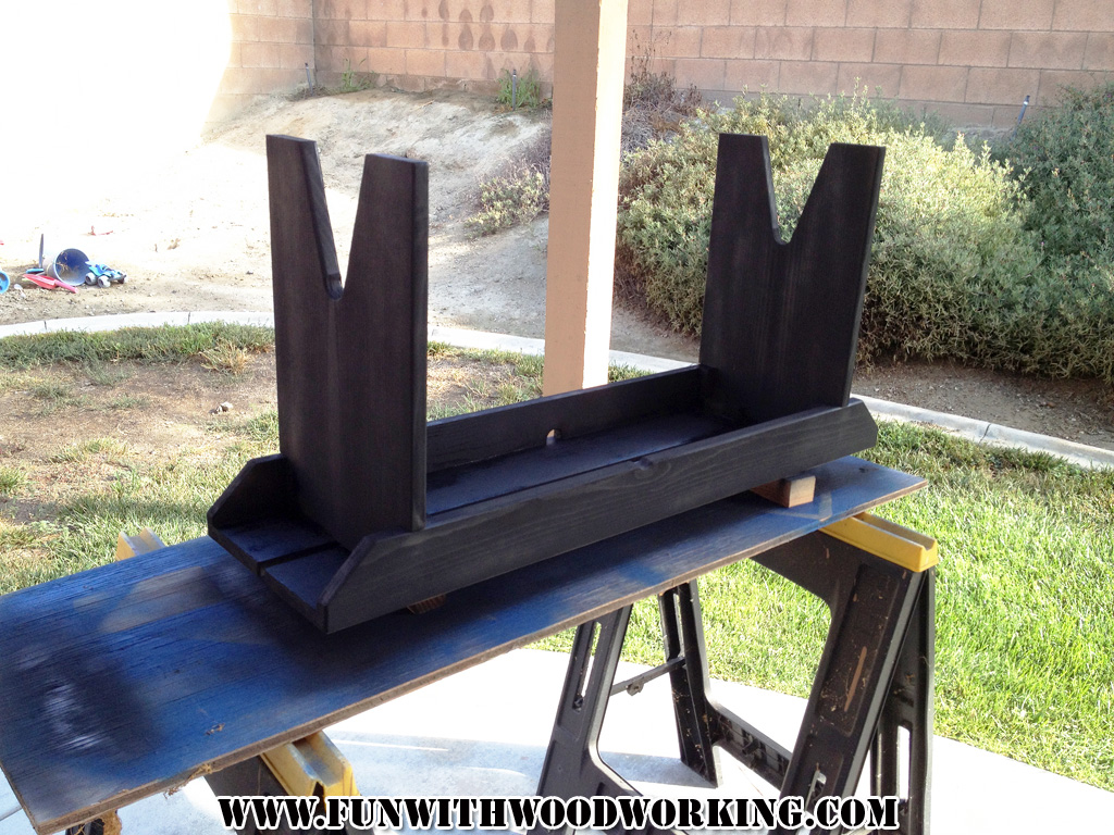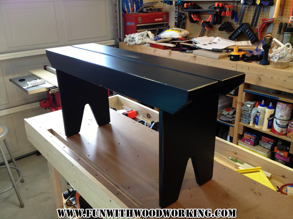 I ended up putting 4 coats on the top and aprons and 3 coats on everything else including the underneath. I also put some felt feet on it but forgot to take pictures.