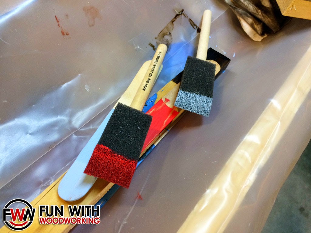 This was my first chance to use the Clamp and Cut Edge guide that I bought at Harbor Freight for around $12.00 and it was worth every penny. They also have a 50″ version that I will probably be picking up in the near future. The small cans of paint were samples that I bought at Home Depot for around $3.50 each. I looked at all the swatches and picked the 2 colors that I wanted and had them mix it up with a flat base. The whole process took about 10 minutes and couldn’t have been any easier. It is my understanding that Lowes will do this as well. Look for more red and blue painted projects in the future.