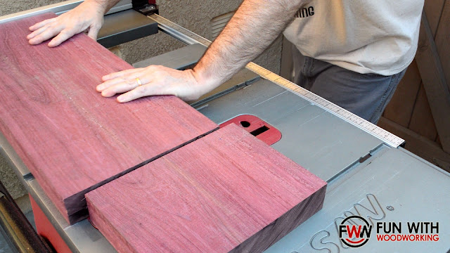 My first step was to go to my local lumber yard and pick up a big chunk of 28″ x 9 1/2″ x 7/4 purple heart for a little under $22.00.