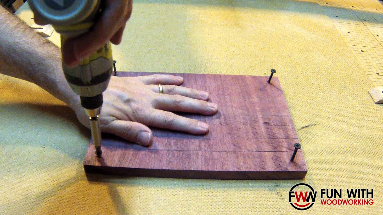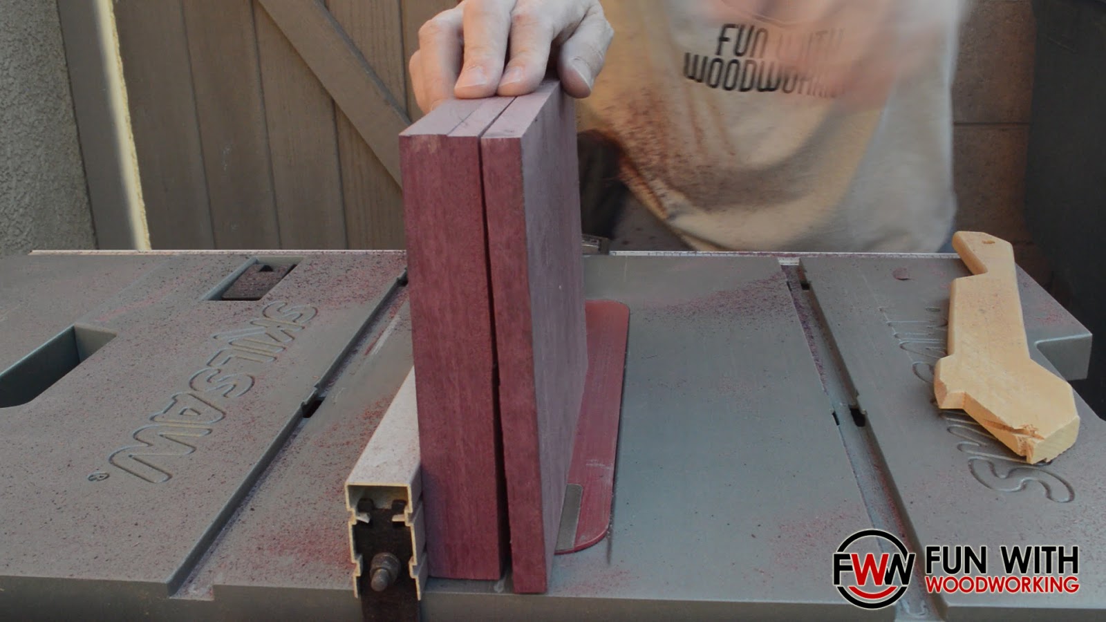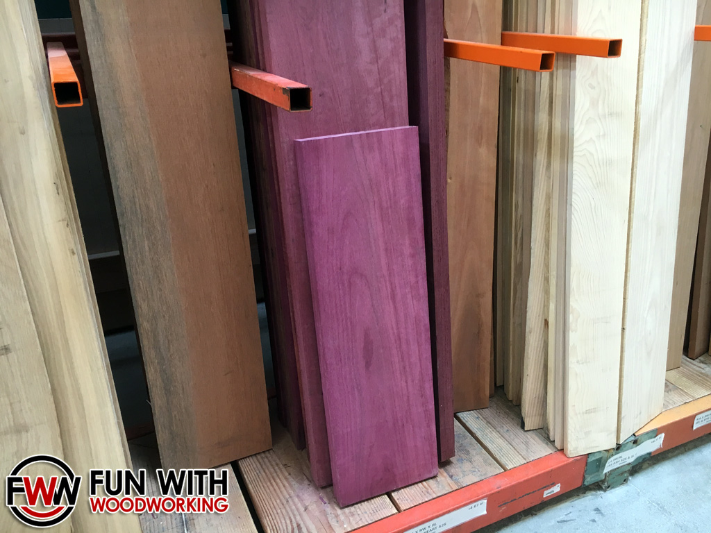 My first step was to go to my local lumber yard and pick up a big chunk of 28″ x 9 1/2″ x 7/4 purple heart for a little under $22.00.