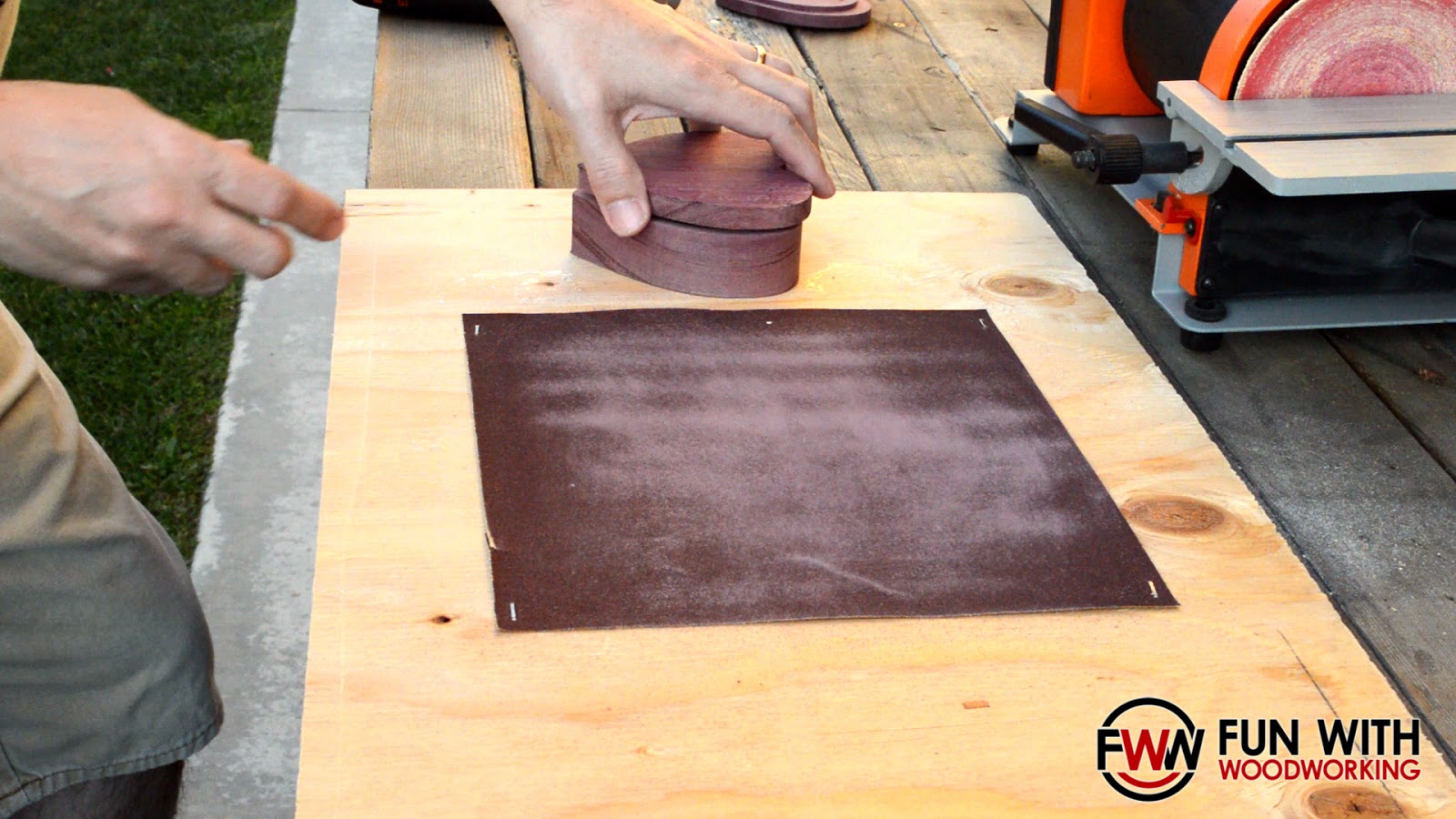 I spray glued and stapled a sheet of 100 grit sandpaper to some plywood to be able to sand the bottom of the lid and the top of the base flat to each other.