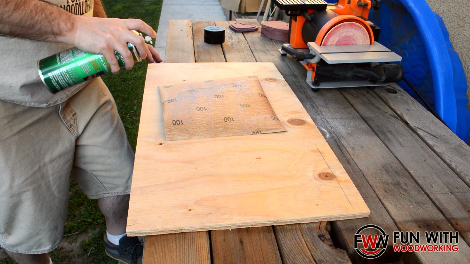 I spray glued and stapled a sheet of 100 grit sandpaper to some plywood to be able to sand the bottom of the lid and the top of the base flat to each other.