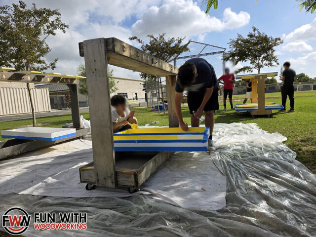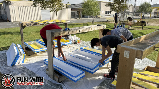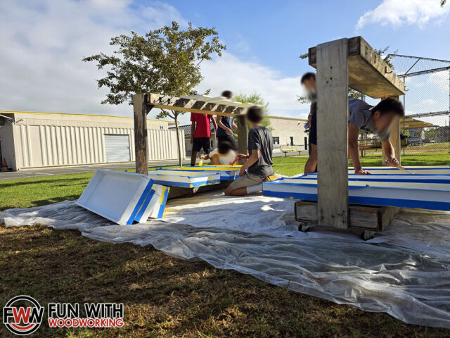 I spent all day Saturday at a local elementary school helping to finish up the 5 lost and found carts that we started building in my shop last weekend (Eagle Scout Project). The project took about 3 hours longer than we had planned but we managed to get them all painted and assembled. I am very proud of the Boy Scout who’s project this is. He did a lot of planning in a short amount of time and managed to get everything finished.