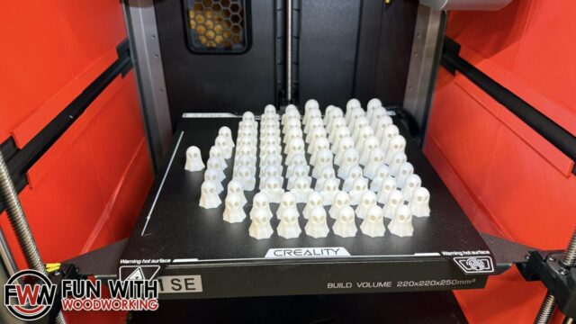 I didn’t want the box to be empty so I fired up the 2 – 3D printers and started printing up a bunch of ghosts and ducks. They were finished by the time I woke up and 9:30 am on Sunday.