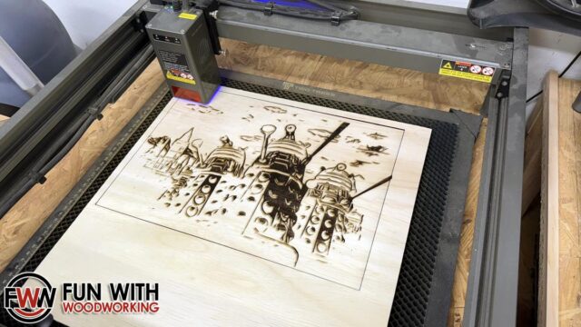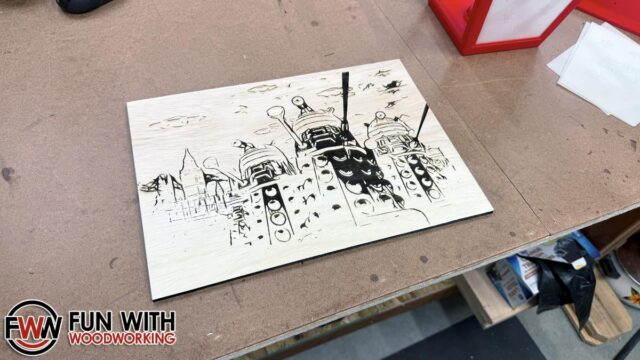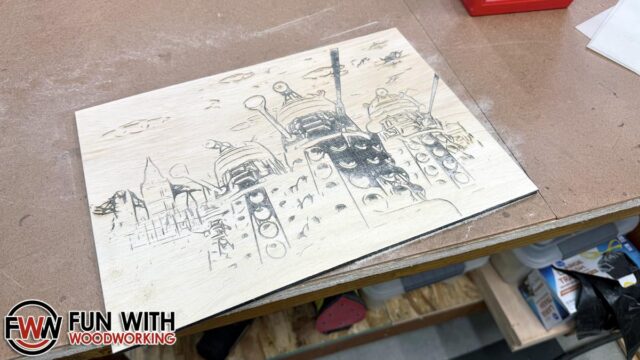 I don’t think that I have mentioned it here yet, but I am attending a Dr. Who convention in February. I also signed up for an art show that they hold during convention. This is the start of one of the pieces that I will potentially be displaying during the show. I say potentially because this is all a big experiment. I plan on adding some paint, glueing it to a thicker substrate, and building a frame. I made a couple of different sizes to experiment with paint colors on top of different stain colors.