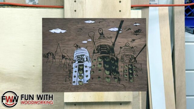 I like the way that the clouds and the green turned out but the blue on the Dalek on the left looks too close to the color of the clouds. I’m going to pick up some more colors and experiment some more on the other Daleks.