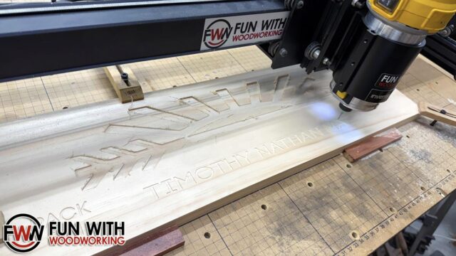 I then installed a 1/16″ bit and engraved the Pack info, bridging date, and name of the scout. Each took 12 to 17 minutes depending on the length of the name.