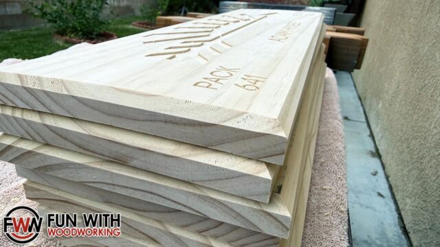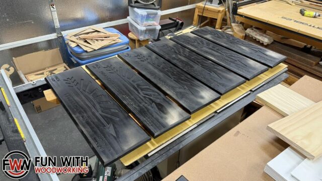 The last step was to paint the edges and inside of the engraved parts with black spray paint. I will let them dry for a couple of days and then sand the paint off of the tops and rears of the boards.
