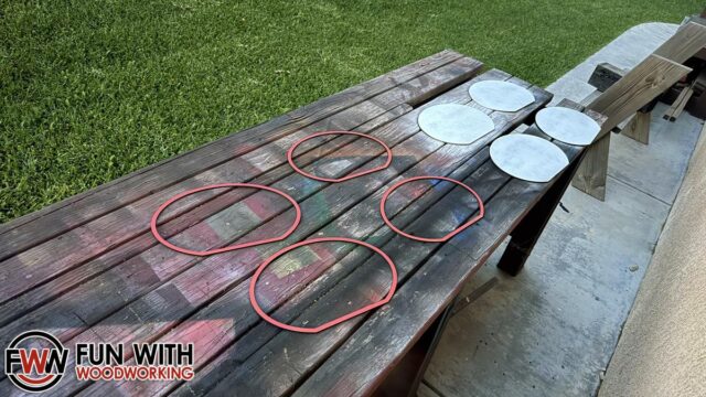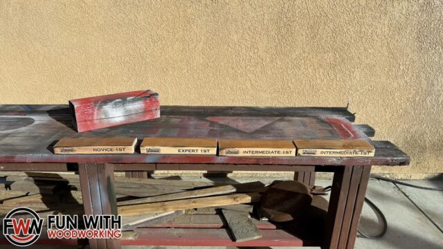 The final step was to cut a quarter inch groove into the tops of the 2×4’s to hold the plaques. They are not glued into place to make for easy transport.