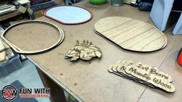 I started by cutting all the pieces out of 1/8″ MDF on my laser.