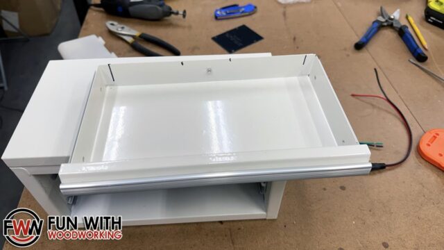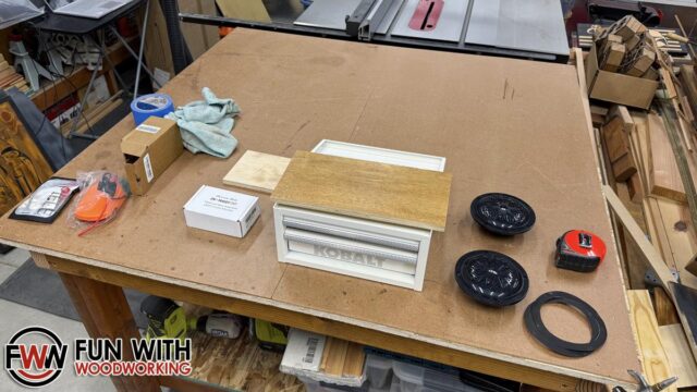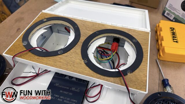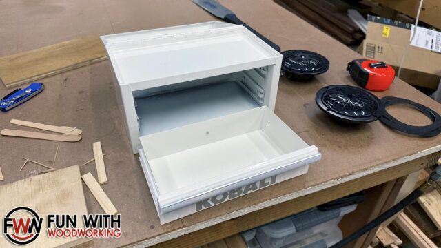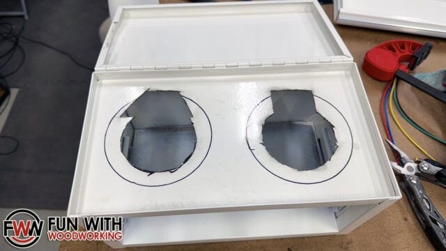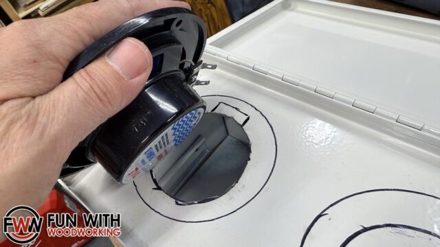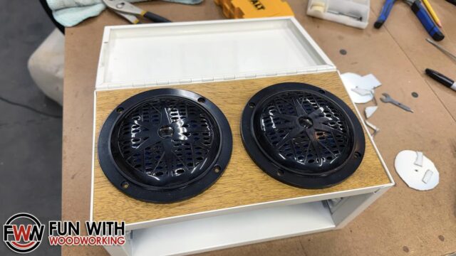 The next step was to test fit the speakers and cut the top drawer to fit.