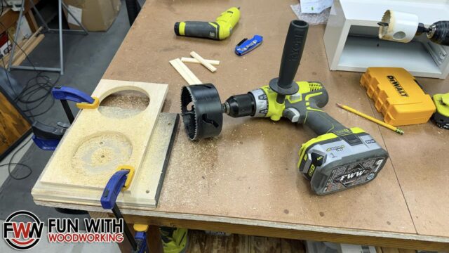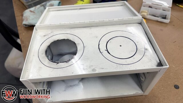 I then measured and cut 2 – 4″ holes into the plywood.