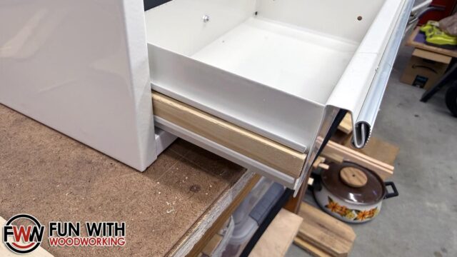 I cut down a paint stirring stick to fit into the grooves on the sides of the drawers to push the tabs back to be able to take the drawers out.