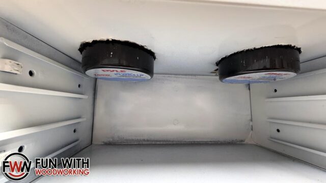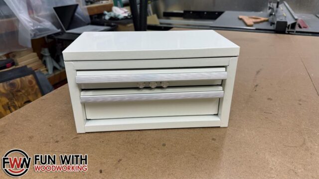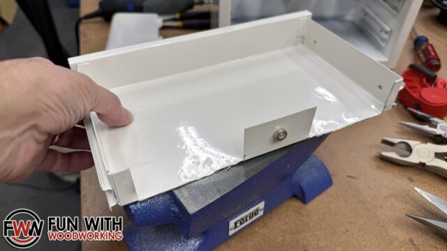 I started out by cutting some scrap 1/2″ plywood down to size to fit in the top compartment.