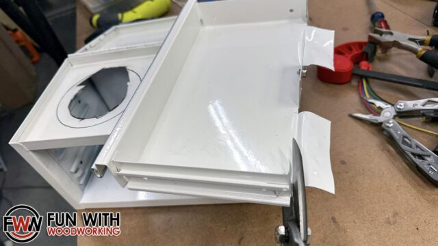 Once the drawers were removed, I used my dremel tool with a cutoff wheel to cuts holes in the top compartment of the toolbox. Can you tell which hole I finished first?