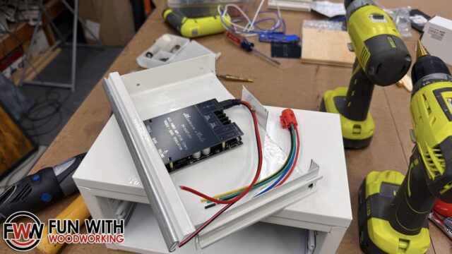 The amplifier was then installed in the top drawer and the power button and battery adaptor in the back.