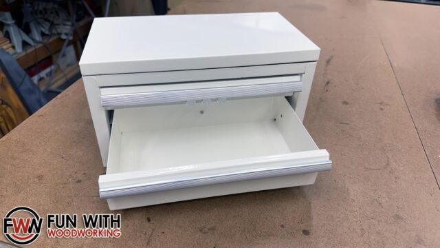 Side note, all of the speaker builds of this type that I have seen on the internet have the amp and power button installed in the bottom drawer. I spent some extra time and effort to keep it empty so it could be actually used to store some small tools.