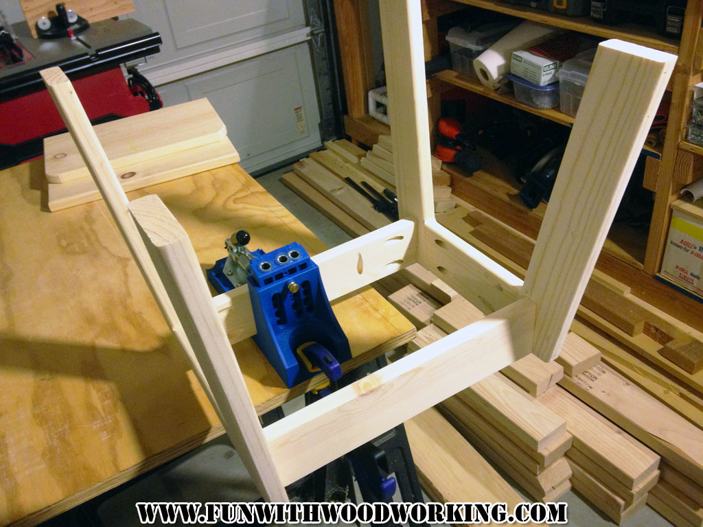 I forgot to put the pocket holes for the seat in when I cut the pieces to length so I added them here.