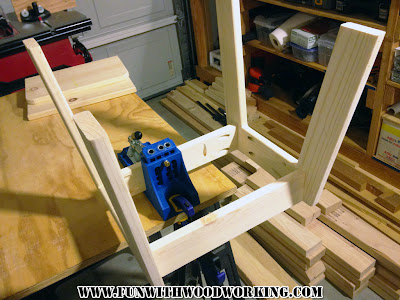 The plan called for 4 pocket holes for the seat back but I put 5 to play it safe.