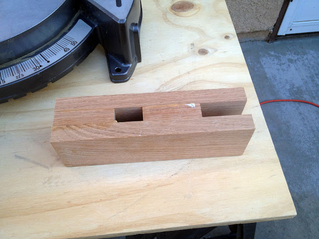 I cut the end to make it uniform and then realized that the mitre saw was still set to 2 degrees from when I made the wedge from inside the mallet head.