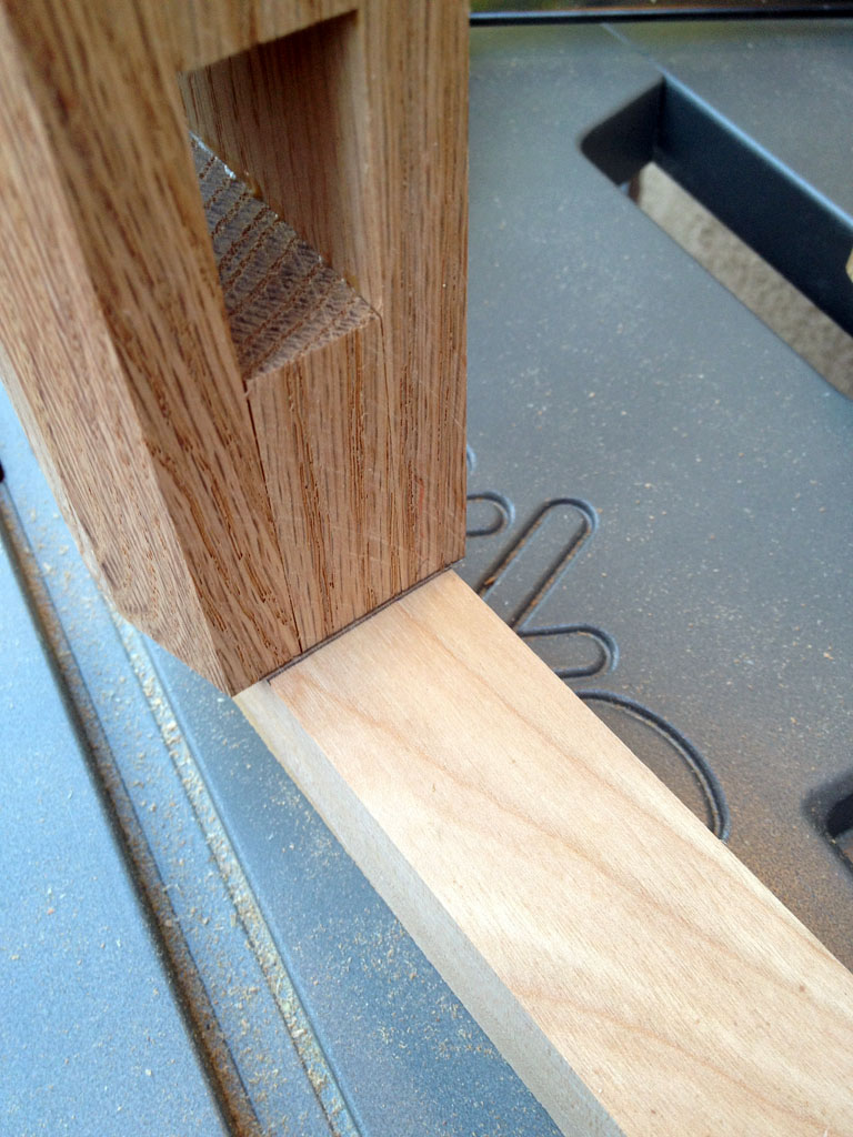 I was able to go out and spend some time on the mallet yesterday and it is really starting to take shape.  Like most of my projects this involved doing a lot of things for the first time.  I removed the safety guards on the tablesaw for the first time (I made sure the kids were inside) and made a tenon on the tablesaw.